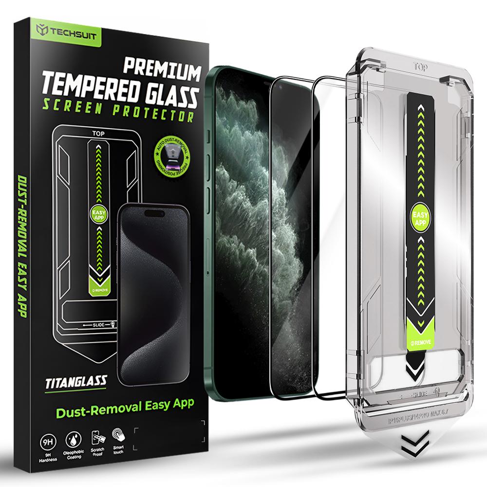 Lot de 2 protections d’écran Techsuit TitanGlass FullCover avec applicateur pour iPhone XS Max / iPhone 11 Pro Max – Black