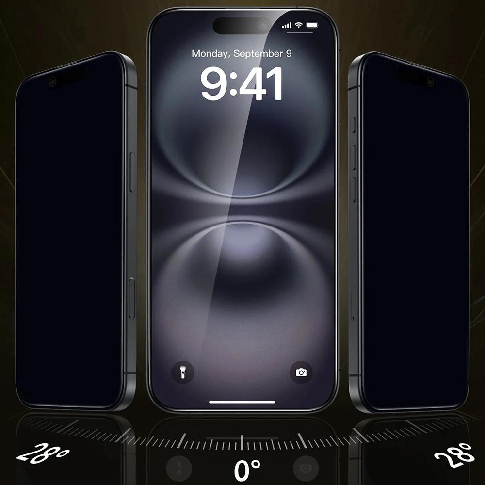 Lot de 3 protections d’écran ESR Corning Gorilla Glass UltraFit Privacy™ pour iPhone 17 / iPhone 16 Pro – Black