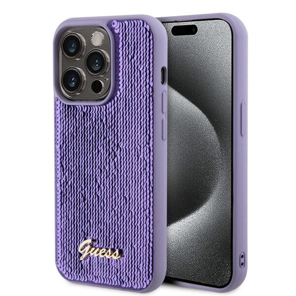 Coque Guess Ring Stand Script Glitter MagSafe pour iPhone 15 Pro Max – Purple
