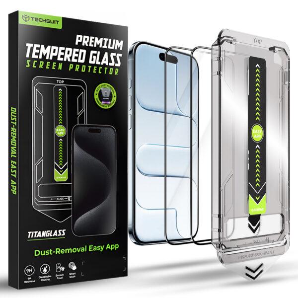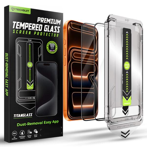 Lot de 2 protections d’écran Techsuit TitanGlass FullCover avec applicateur pour iPhone 16 Pro Max – Black