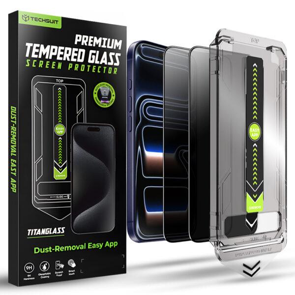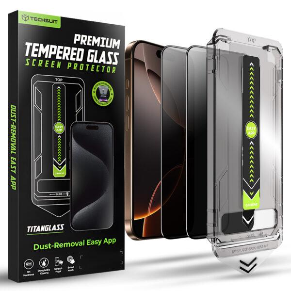 Lot de 2 protections d’écran Techsuit TitanGlass FullCover avec applicateur pour iPhone 16 Pro Max – Privacy